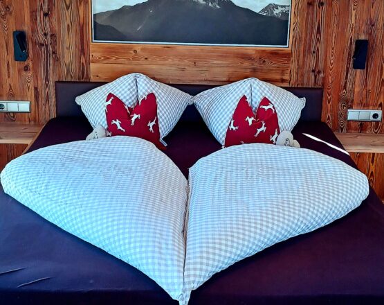 Unser kinderfreundlicher Hof bettet sich ein in ein traumhaftes Panorama auf dem Hochplateau des Tschögglberges oberhalb von Meran auf 1340 Metern über dem Meeresspiegel inmitten eines Wanderparadieses in ruhiger Waldrandlage, mit wunderbaren Blick auf die Texelgruppe.